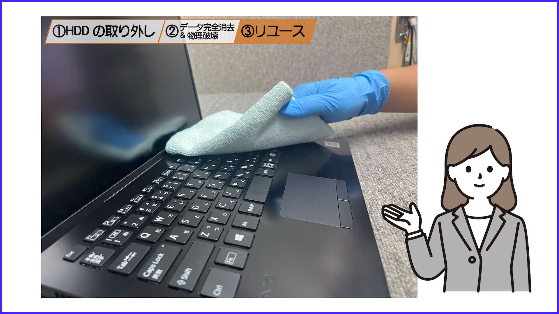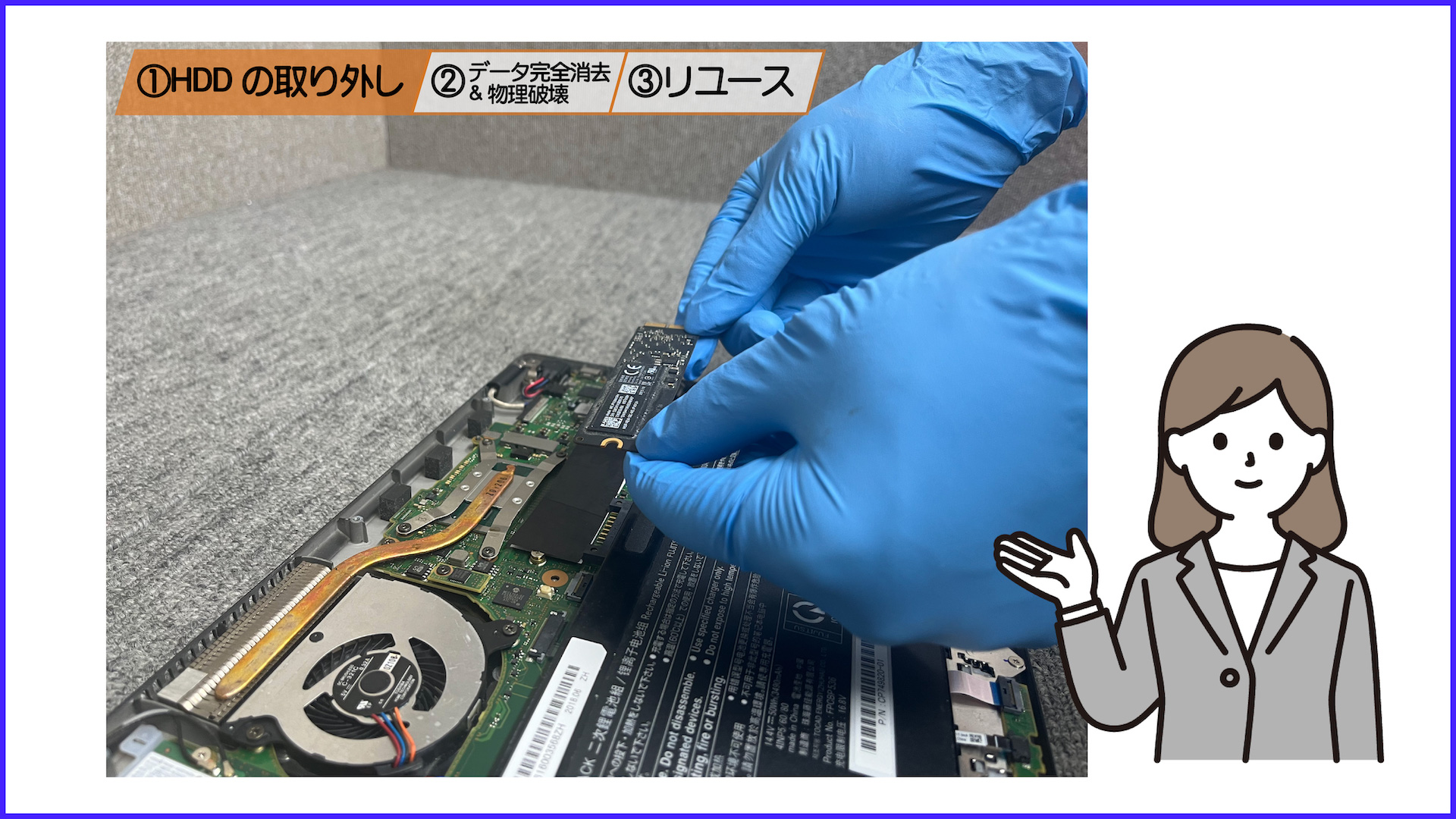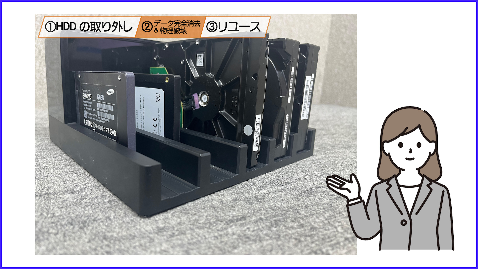 HDD(ハードディスク)とは、お客様の個人情報が入っている記憶装置のことです。