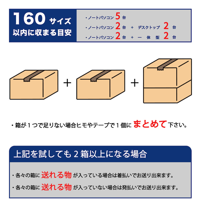 1箱の目安は「160サイズまで」荷物の大きさ「160cm以内」重さ「25kgまで」